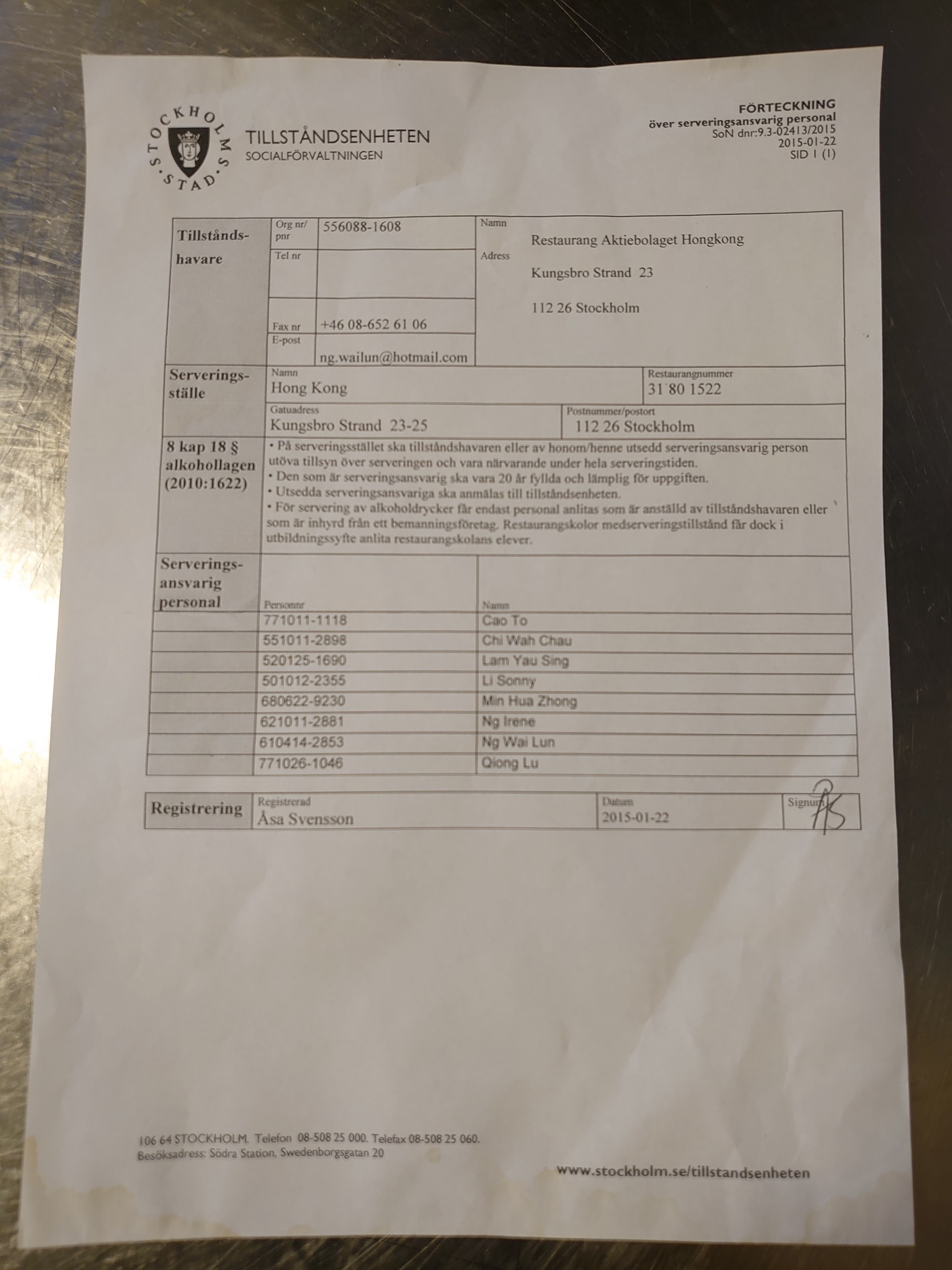 - Restaurang Hongkong - äldsta Kina restaurangen i Stockholm